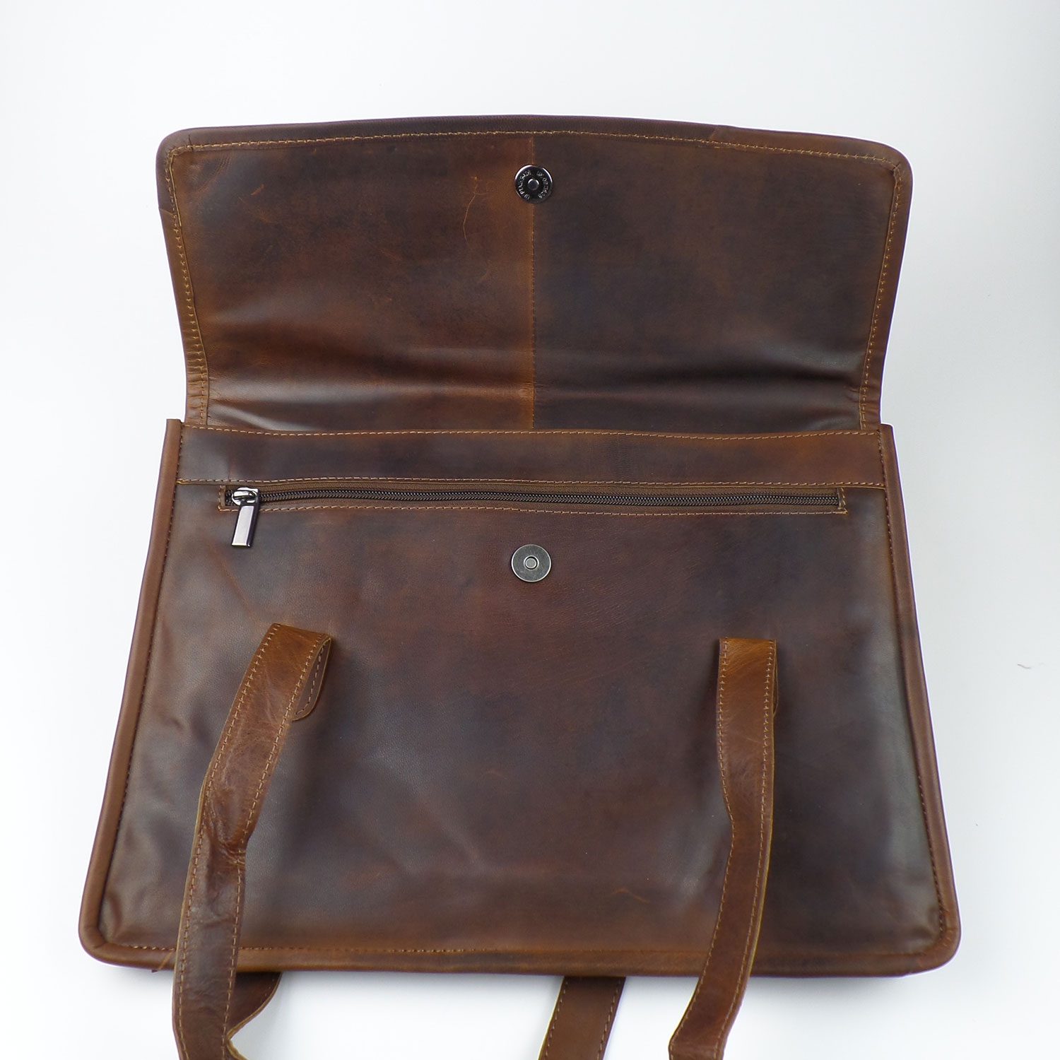 Vielseitig einsetzbare Tasche für Business und Beruf. Auch praktisch für ein kleines Notebook. Im vorderen Bereich, der durch einen Magneten geschlossen wird, gibt es eine große Innentasche mit Reissverschluss. Im Innenbereich ist noch einmal eine große Reissverschlusstasche sowie zwei kleine Einsteckfächer z. B. für Handy oder Schlüssel. Die Reissverschlusstasche auf der Rückseite ist ebenfalls sehr gross.